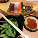 築地食堂 源ちゃん - 小鉢もずく(甘いタレ)、味噌汁付き(あおさ)